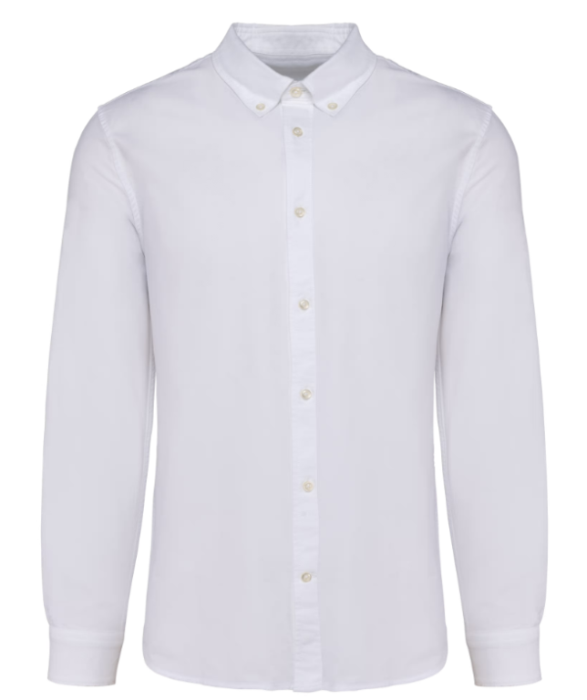 100% coton peigné. Tissu en Oxford. Coupe ajustée. Col chemise pointe de col boutonné. Bouton blanc effet nacré sur toutes les couleurs. Patte de boutonnage rapportée milieu devant. Empiècement dos doublé avec plis d’aisance. Manches longues avec poignets ajustables à angles arrondis avec patte de manche capucin boutonnée. Pas d'étiquette de marque uniquement une puce de taille Tear Away pour faciliter la personnalisation. Fabriqué au Portugal.