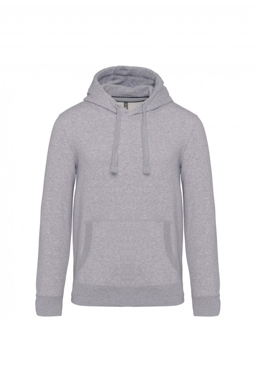 80% coton / 20% polyester. Traitement LSF (Low Shrinkage Fleece: molleton pré-rétréci). Molleton gratté 3 fils en coton peigné. Manches montées. Bande de propreté contrastée à l'encolure (Navy pour le coloris Oxford Grey et Oxford Grey pour tous les autres coloris). Capuche doublée en nid d'abeille avec cordon de serrage. Poches kangourou. Finition bord-côte poignets et de bas de vêtement. Certifié STANDARD 100 by OEKO-TEX®N° CQ1007/7, IFTH.