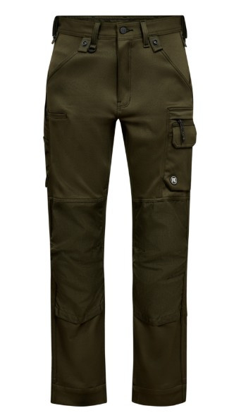 Pantalon de travail fonctionnel en tissu super extensible ENGEL, résistant à l'usure et respirant composé de 56 % de polyester régénéré. Le design du pantalon privilégie un confort élevé et une grande liberté de mouvement. Les genoux de forme ergonomique et le tissu extensible rendent le pantalon agréable à porter quel que soit la position de travail. Le pantalon de travail est doté de boutons sur le devant pour y attacher des poches pendantes si nécessaire. Ce système permet de les mettre en place ou de les retirer de façon simple et rapide. Il n'est pas utile de vider les poches pendantes pour laver le pantalon. Il suffit de les détacher et de les rattacher après lavage. Le pantalon est doté d'un anneau en D à l'avant pour la fixation par exemple d'une carte d'identité ainsi que de plusieurs poches fonctionnelles, dont deux larges poches obliques à l'avant. Poche de cuisse avec zip. Sur le côté gauche, la poche propose un logement séparé pour le téléphone. Sur la cuisse gauche se trouve également une poche renforcée pour mètre pliant, semi flottante, avec des compartiments supplémentaires. À la ceinture se trouve un passant porte-marteau et sur la cuisse droite, une poche fonctionnelle pour y loger une règle ou un crayon par exemple. Le pantalon offre 2 options de réglage pour l'insertion de genouillères, ainsi qu'un renfort en CORDURA supplémentaire sur les genoux. Des passepoils, réfléchissants garantissent une meilleure visibilité et sécurité. Il est facile de rallonger les jambes au besoin, car le pantalon de travail est doté d'un ourlet extra-large dépliable, destiné à augmenter la longueur d’entrejambe. Si la couture est retirée et le rabat déplié, le pantalon est immédiatement prêt à l’emploi.