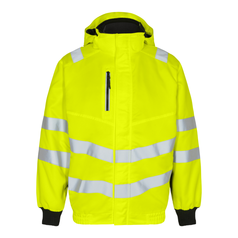Blouson aviateur fluorescent, imperméable et coupe-vent, coupe moderne. Col haut avec polaire à l’intérieur. Double fermeture postérieure avec fermeture à glissière et fermeture velcro sur le devant. Deux spacieuses poches latérales et une poche poitrine avec une fermeture à glissière. Deux poches intérieures, dont une avec fermeture à glissière. Capuche amovible avec possibilité de réglage et espace pour le casque de travail. Élastique en bas et côtes au poignet. Fermeture à glissière pour y appliquer une impression/broderie. Bandes réfléchissantes sur les épaules, ainsi qu’autour des bras et du corps. Catégorie de vêtement 3. Testé après 50 lavages.