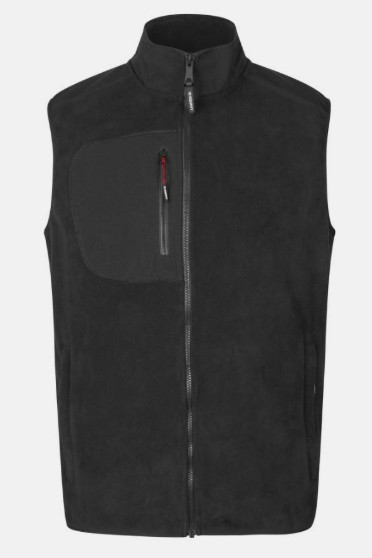 Gilet résistant en polaire douce avec application. Doublure polaire à l'intérieur du col. Ourlet et emmanchures élastiqués. Fermeture éclair YKK sur le devant, les poches poitrine et les poches latérales.