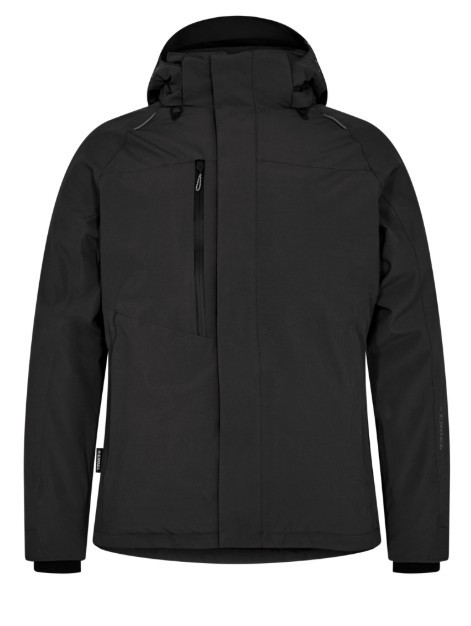 Une veste d'hiver pratique et belle, fabriquée en matière respirante et extensible, pour plus de confort et de liberté de mouvement. La veste a des coutures étanches et est coupe-vent et imperméable. Le col intérieur est doux et confortable sur la peau et coupe-vent. Fermeture éclair dissimulée avec boutons pression sur le devant. Deux poches latérales avec fermeture éclair. Poche poitrine avec fermeture éclair déperlante. Deux poches intérieures, avec fermeture velcro. La veste est dotée d'une capuche amovible et de manches avec coupe-vent côtelé - les deux peuvent être ajustées. Panneau arrière allongé et pare-neige en bas. Fermeture éclair dans la doublure pour impression/broderie. Passepoil réfléchissant pour une visibilité accrue.