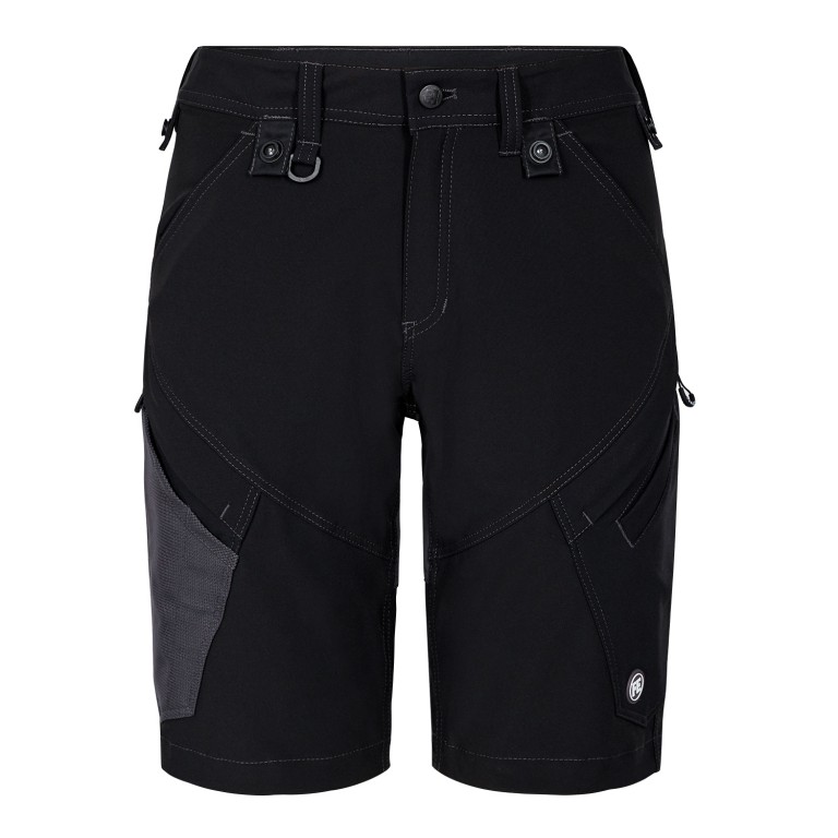 Functionele werkshorts met moderne pasvorm en heel veel praktische details. Optimale pasvorm. Het materiaal is gemaakt van comfortabele 4-way stretch en is duurzaam en ademend. Daarnaast absorbeert het materiaal zweet en droogt het snel, zodat het extra comfortabel is. Voorzien van knopen om loshangende nagelzakken gemakkelijk aan te bevestigen. D-ring aan voorkant om bijv. een ID-kaart aan te bevestigen. Twee schuine steekzakken aan de voorkant. Twee achterzakken. Twee dijbeenzakken, die afgesloten kunnen worden met een rits. Aan de linkerzijde heeft de dijbeenzak een extra telefoonzakje. Aan de rechterzijde heeft de dijbeenzak een ingebouwde duimstokzak met extra vakjes.